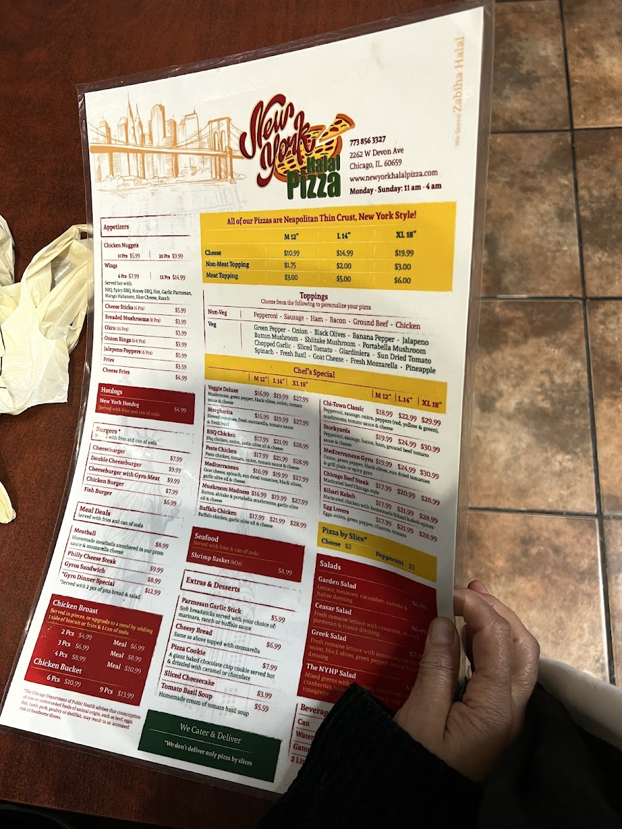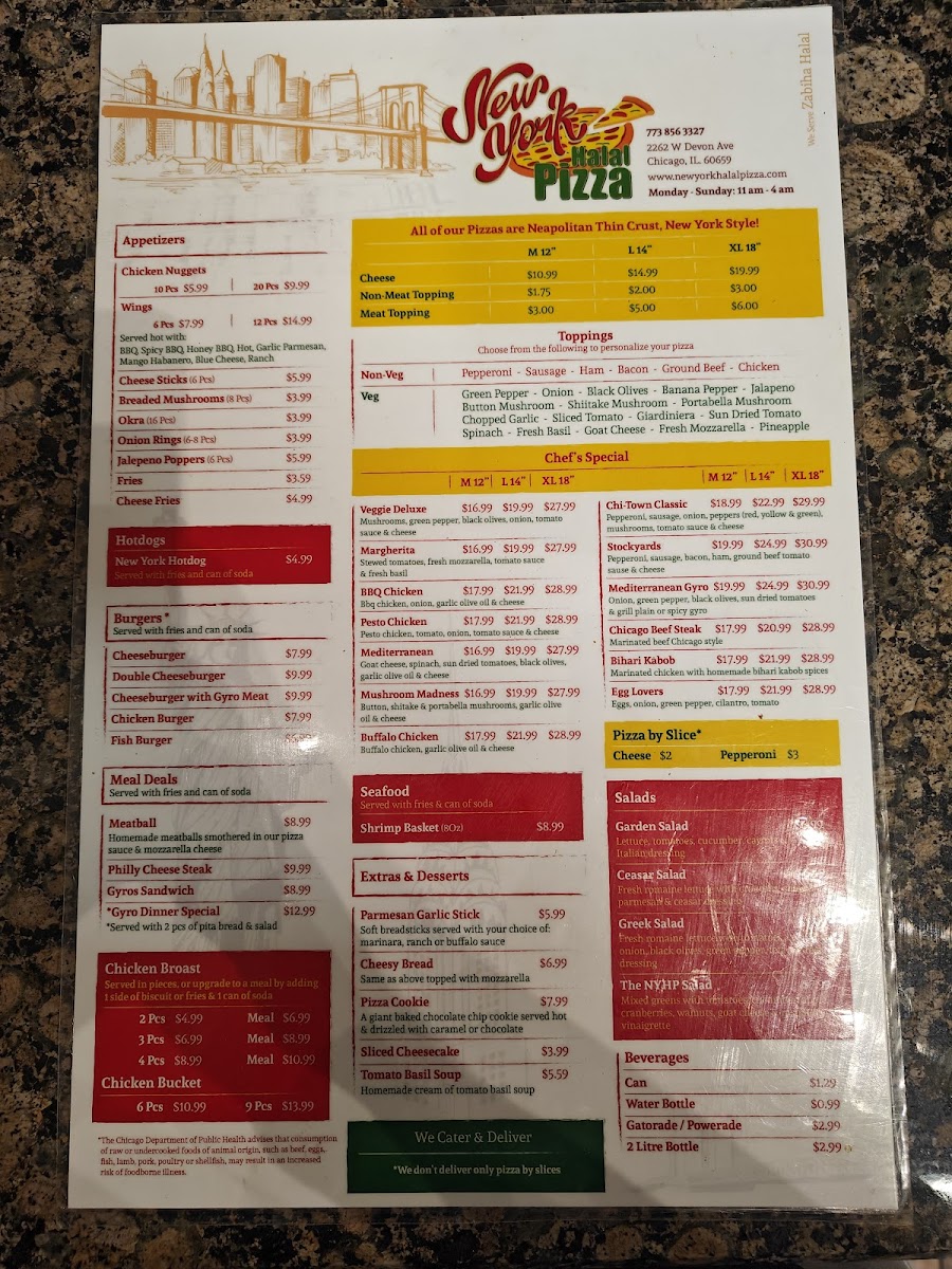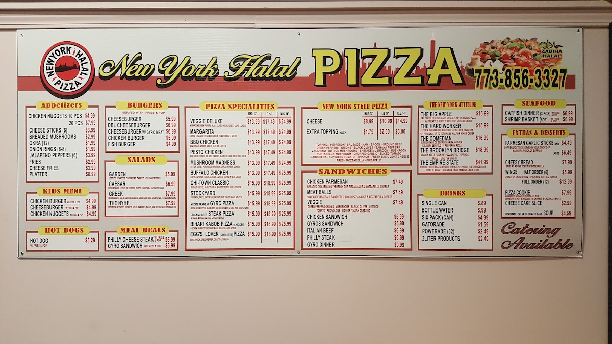 Craving something delicious and satisfying? Look no further than the New York Halal Pizza Menu! Nestled at 2262 W Devon Ave in Chicago, this spot offers a fantastic selection of mouth-watering pizzas. From classic New York-style slices to creative halal toppings, you’re sure to find something that hits the spot. The menu features a variety of pizzas, each prepared with fresh ingredients and bold flavors. Whether you're in the mood for a traditional pepperoni or something with a little more kick, every bite promises to be full of taste. Plus, with options for all dietary preferences, it's a great place for anyone to indulge in a flavorful meal. So grab a seat and dive into the exciting range of choices that make New York Halal Pizza stand out!